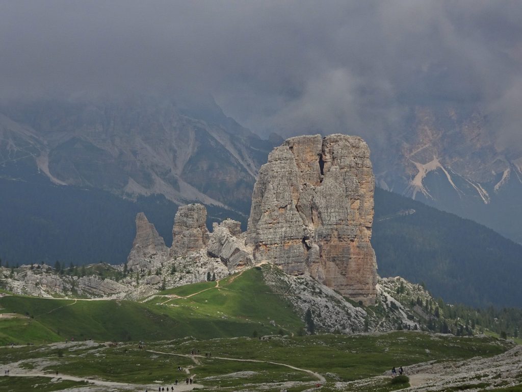 Fantastiški vaizdai nuo Giau perėjos. Žygiuojame iki Rifugio Nuvolau. Žvilgsnis į Torre Grande iš viršaus