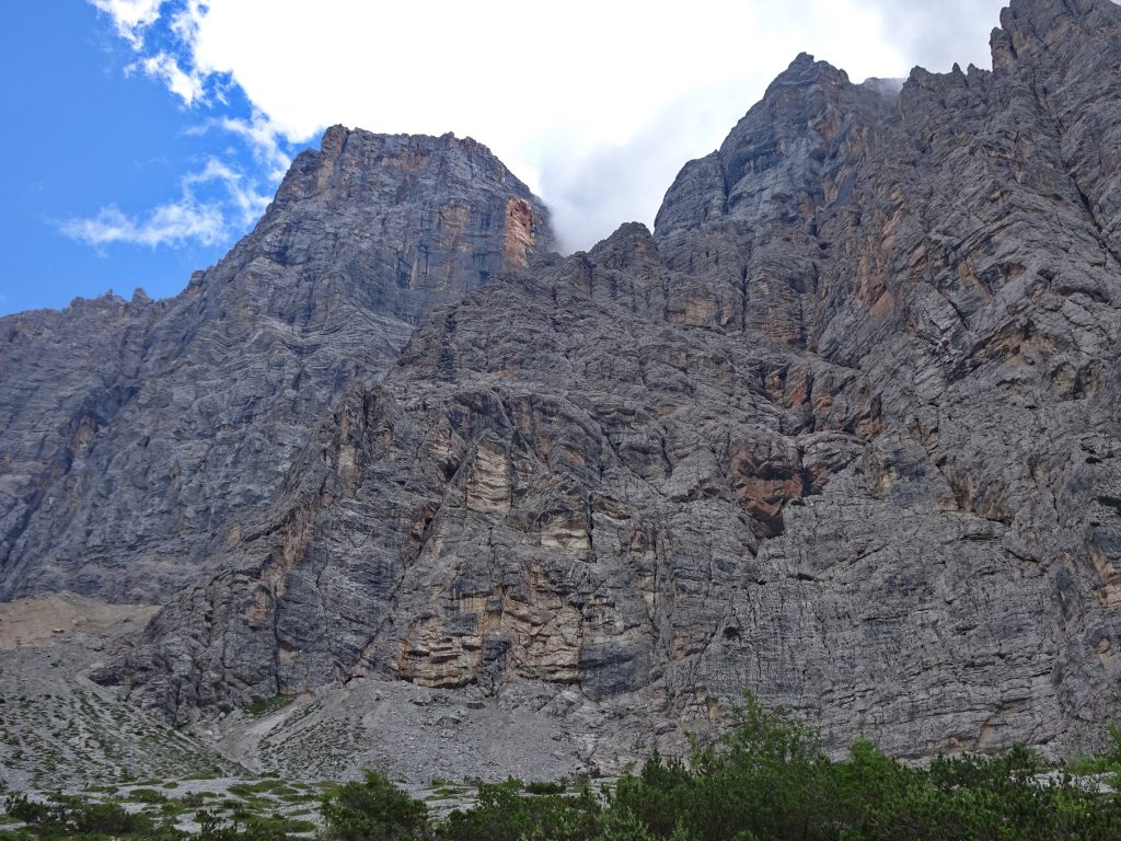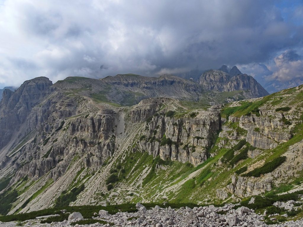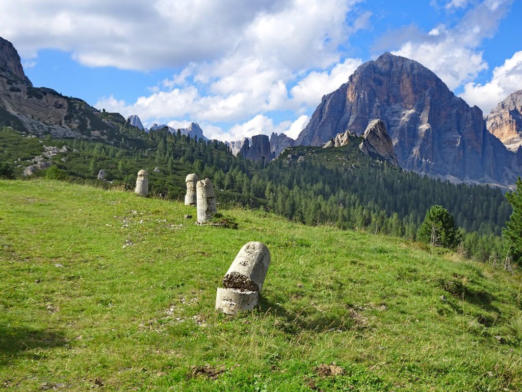 Pirmajam kojų pramankštinimui pakylame iki pirmojo pasaulinio karo laikų įtvirtinimų Lagazuoi kalnyno šlaite. Vaizdas į Torre Grande.